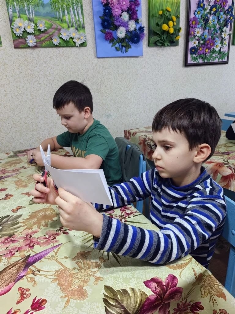 Они сделали очень милого гусенка из бумаги, ловко справившись с ножницами и клеем. Это занятие не только помогло им развить мелкую моторику, но и принесло много радости!
