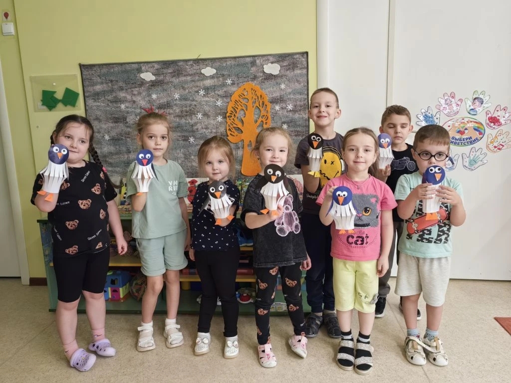 Аппликация из бумаги в форме пингвина - отличный вариант украшения интерьера или даже может стать маленьким сувениром. Для ребят из творческого объединения "Волшебная страна", создание подобной аппликации стало увлекательным занятием, способствующим развитию мелкой моторики рук, воображения и креативности.