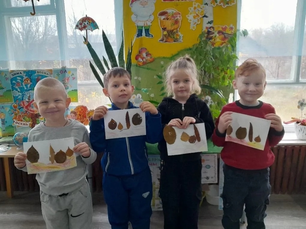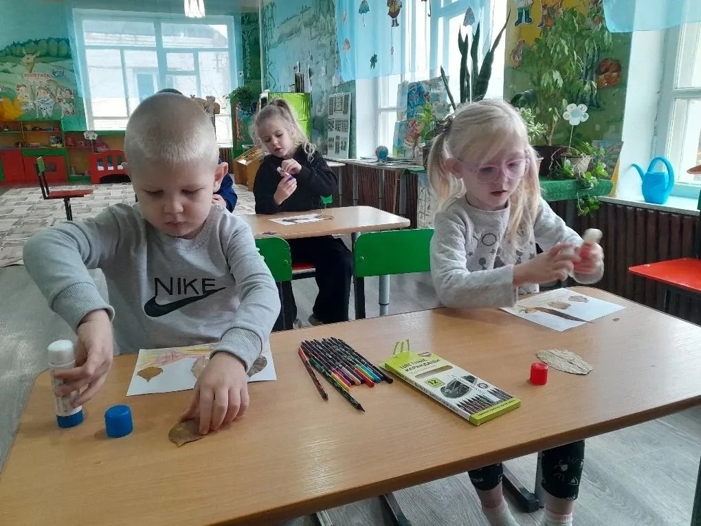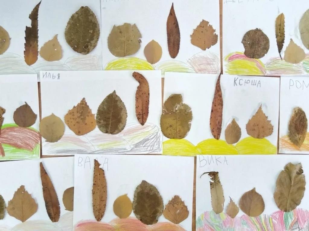 Обучающиеся творческого объединения "Мастерская чудес" для дошкольников изготовили накладную аппликацию с использованием сухих листьев.