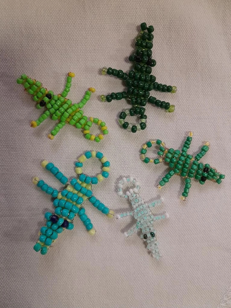 Обучающиеся образцового детского коллектива "Мастерская чудес" изготовили из бисера объёмного маленького крокодила.