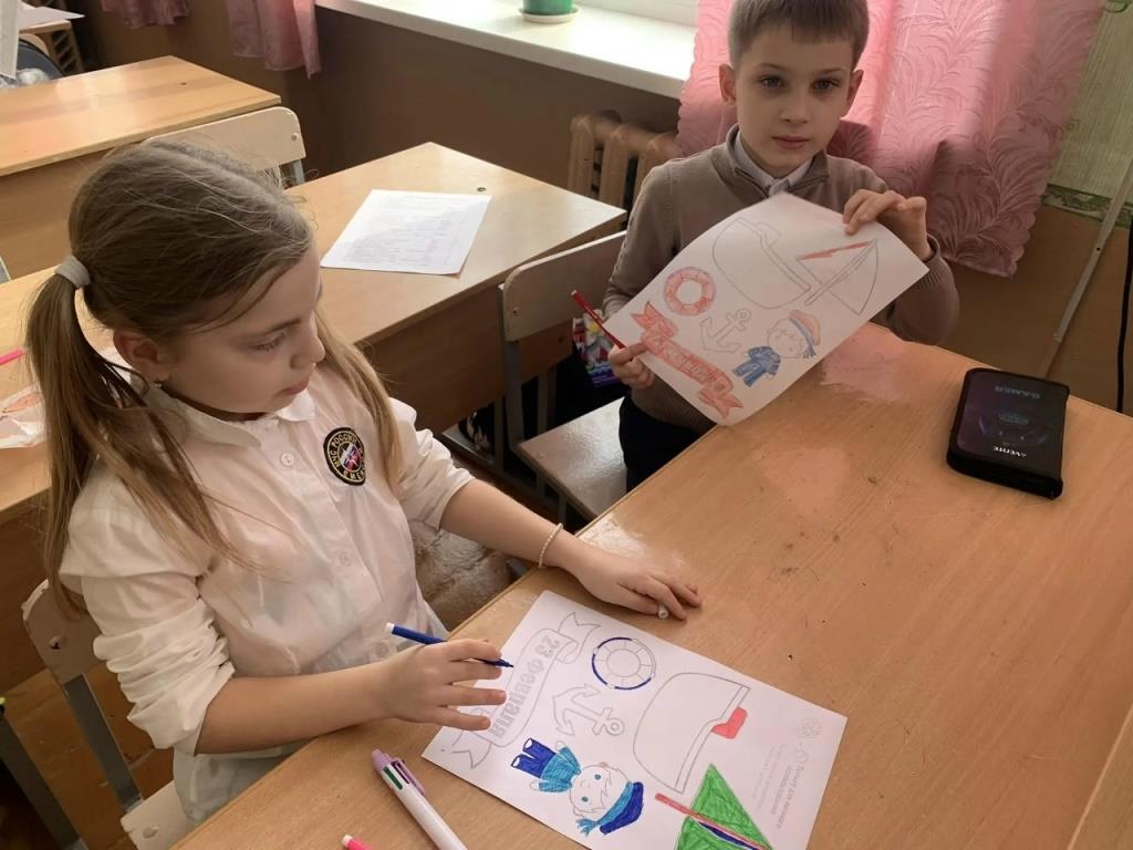 Главная » 2026»Февраль»23 » Обучающиеся образцового детского коллектива «Акварелька» нарисовали праздничные открытки ко Дню защитника Отечества.