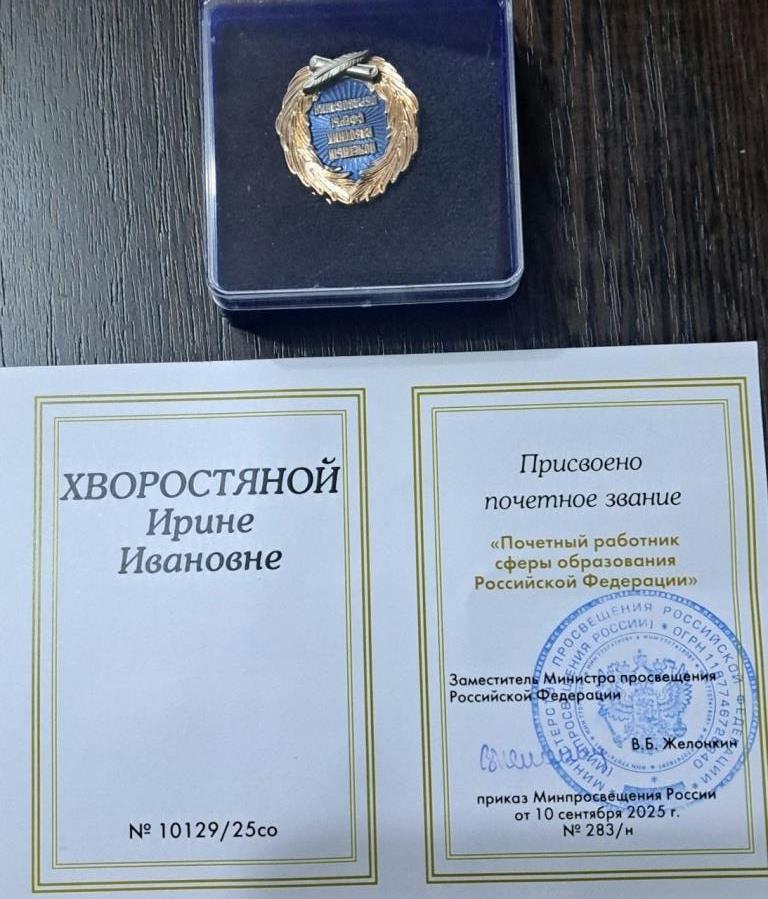 Коллектив Центра детского творчества «Ассоль» поздравляет Хворостяную Ирину Ивановну, педагога дополнительного образования, с присвоением заслуженной профессиональной награды - почетного звания «Почетный работник сферы образования Российской Федерации». Этой государственной награде предшествовал долгий путь ежедневного труда. Почётное звание - высокая оценка вашего вклада в обучение и воспитание подрастающего поколения!