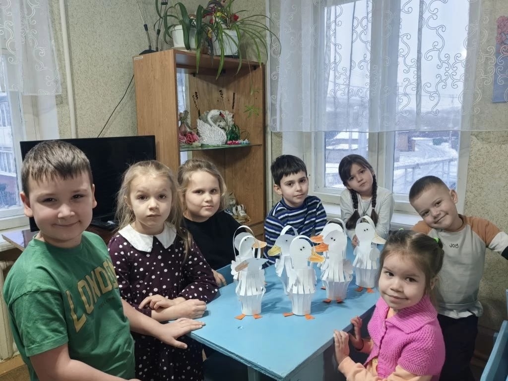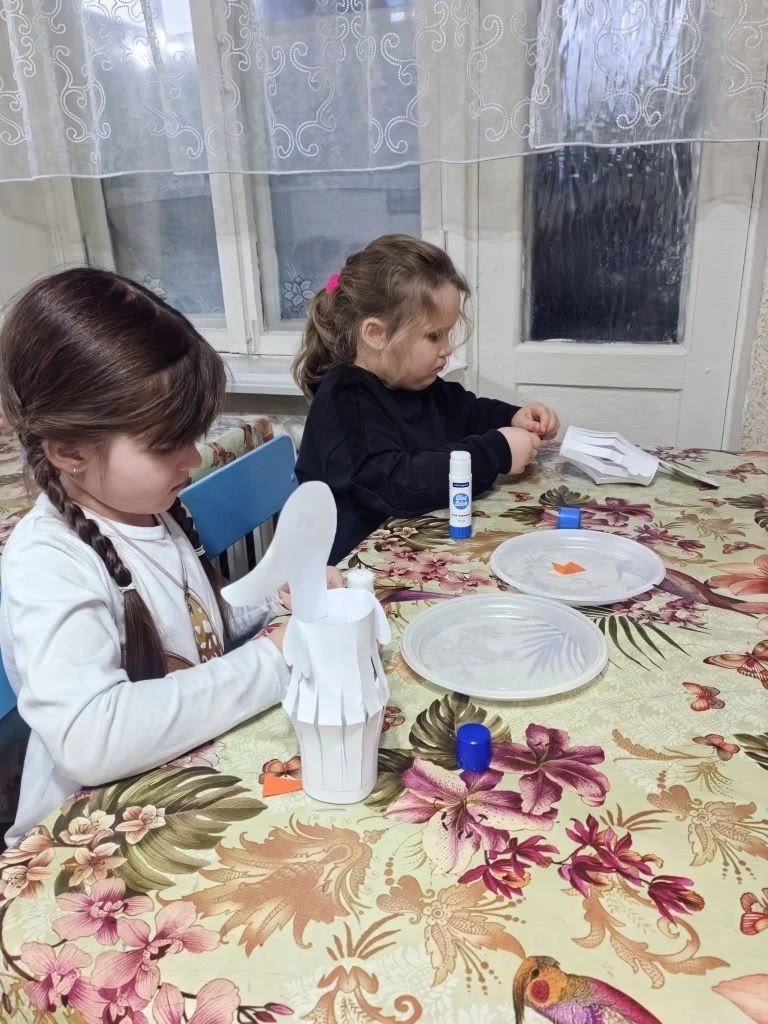 Они сделали очень милого гусенка из бумаги, ловко справившись с ножницами и клеем. Это занятие не только помогло им развить мелкую моторику, но и принесло много радости!