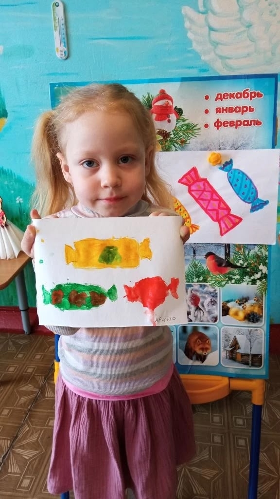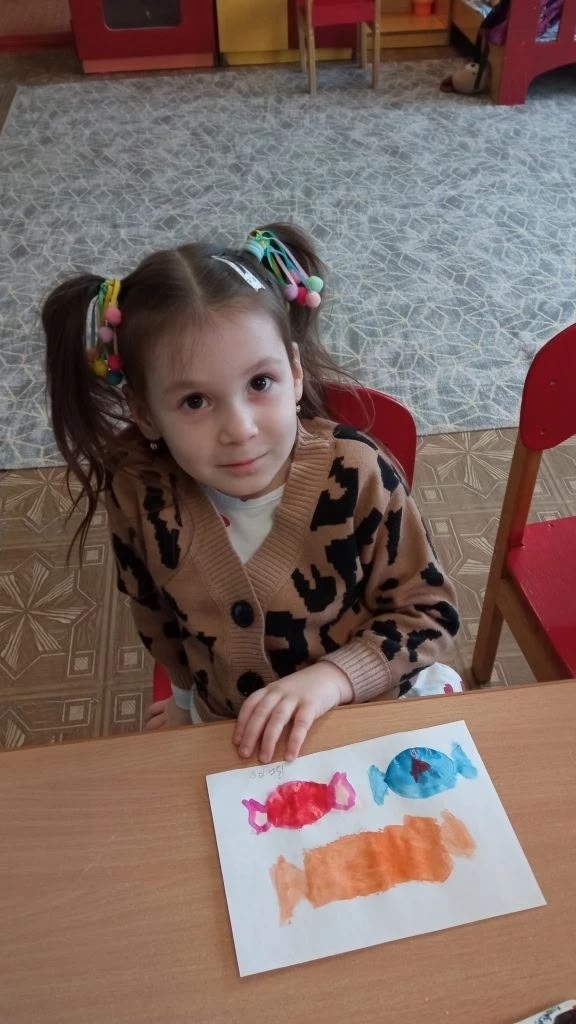 В процессе занятия дети играли в игру «Съедобное-несъедобное», где называли съедобные и несъедобные продукты и предметы, а также учились подбирать цвета. В результате у всех получились яркие и аппетитные конфеты!