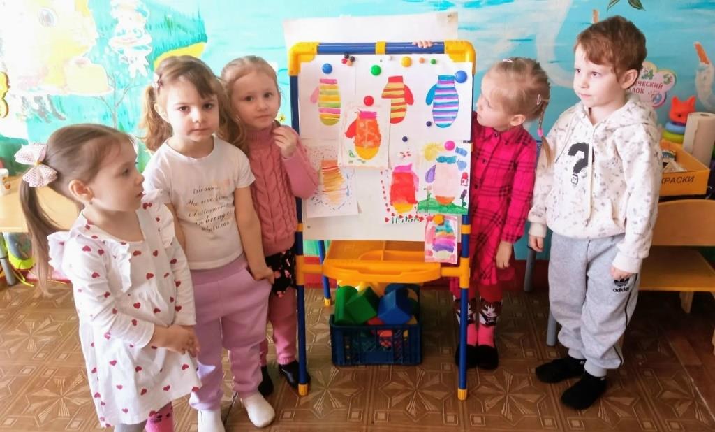 На занятии в творческом объединении «Юный художник» дошкольники учились украшать узорами рукавички. Они рисовали прямые линии, используя технику рисования – чередование и закрепляли знания о цветах. Дети узнали о симметрии парных предметов, познакомились с понятием «орнамент». Затем дети поиграли в игру «Найди пару», нашли пару каждой рукавичке и сделали вывод о том, что в каждой паре узор повторяется.